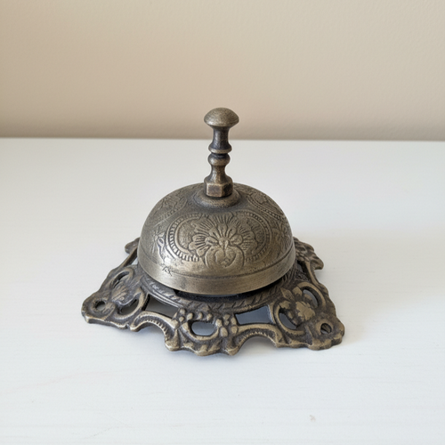 Vintage-Style Ornate Brass Desk Bell | Classic Call Bell for Counter, Hotel, or Home Decor