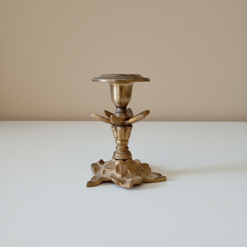 Vintage Miniature Brass Candlestick Holder | Small Indian Temple Decor