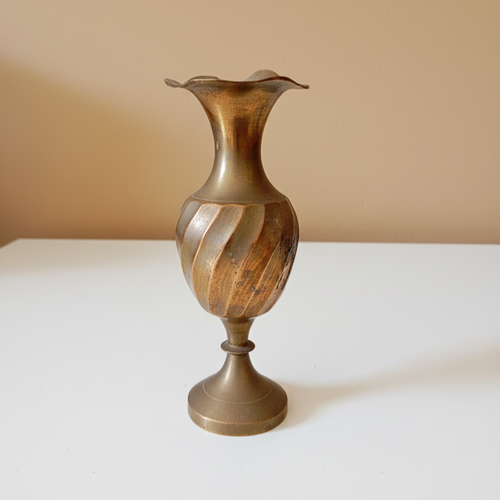 Vintage Miniature Brass Candlestick Holder | Ribbed Column Candle Stand