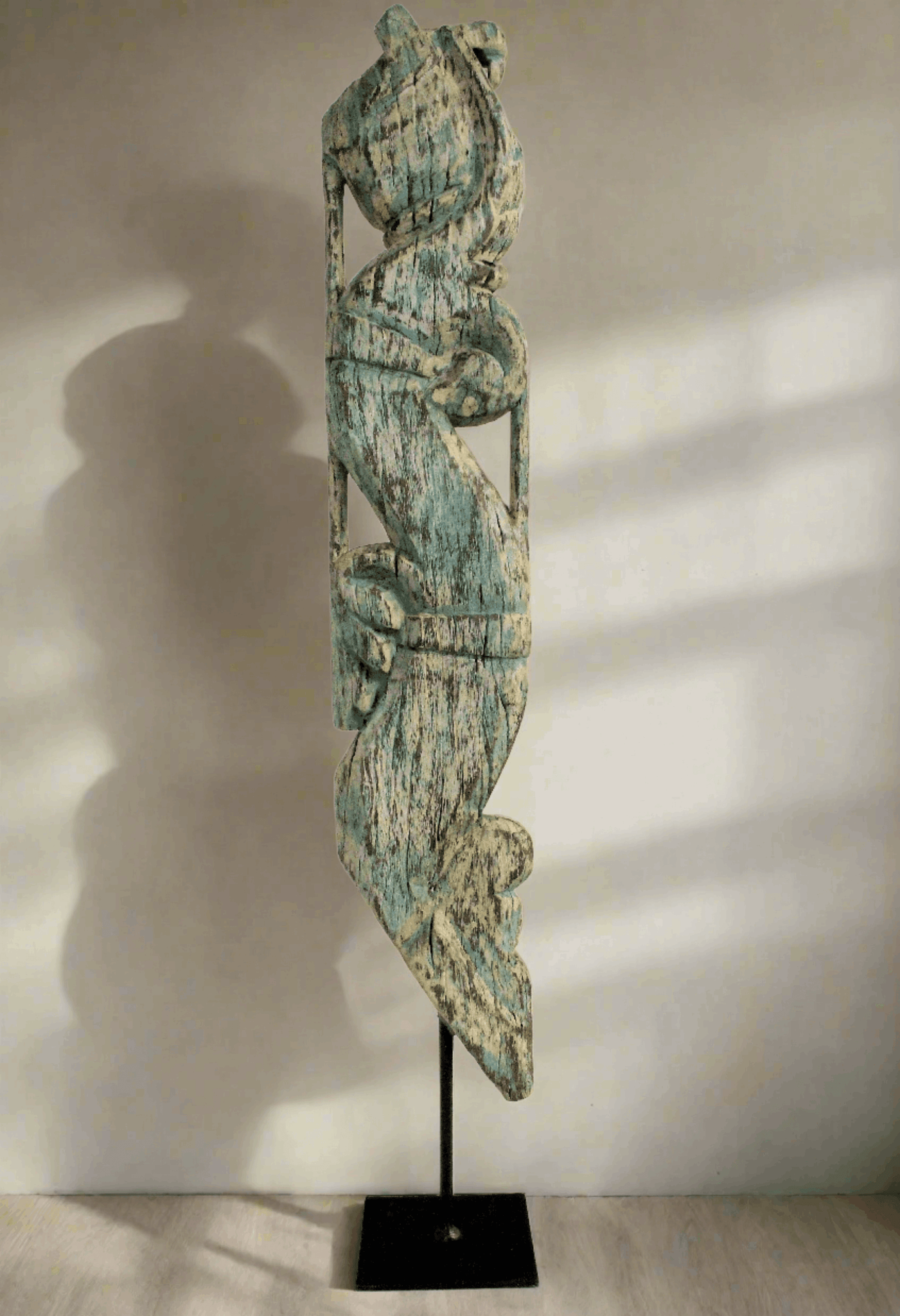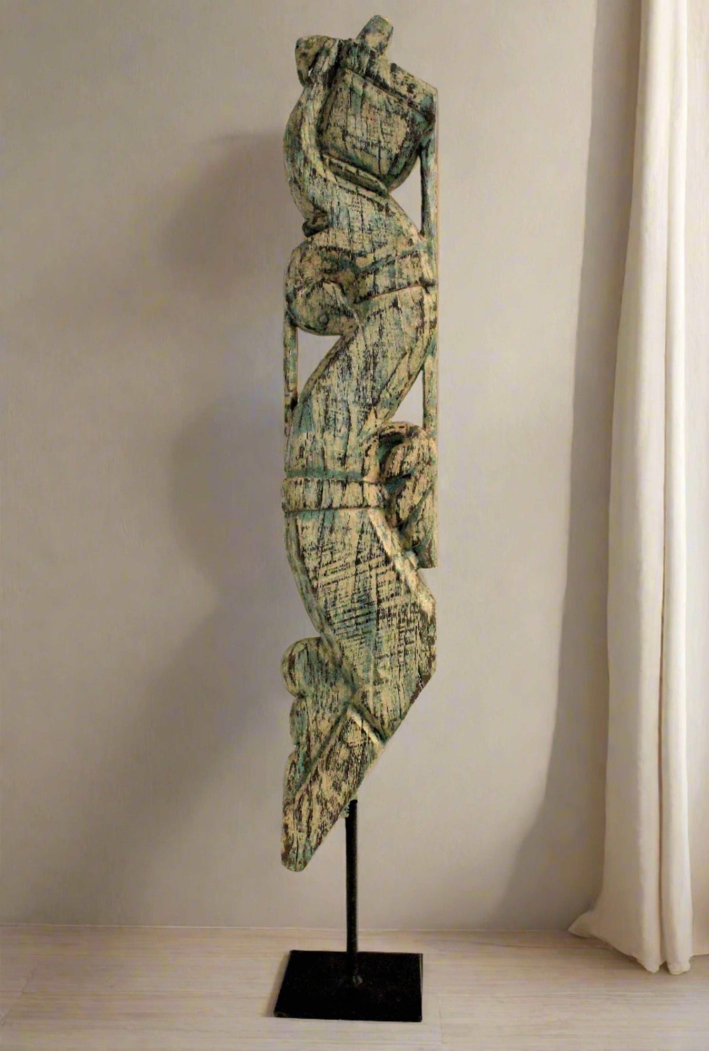 Vintage Wooden Distressed Hand Carved Bracket Standee. It is beautifully carved in a single wood piece. This is extracted from an old wooden Pillar.